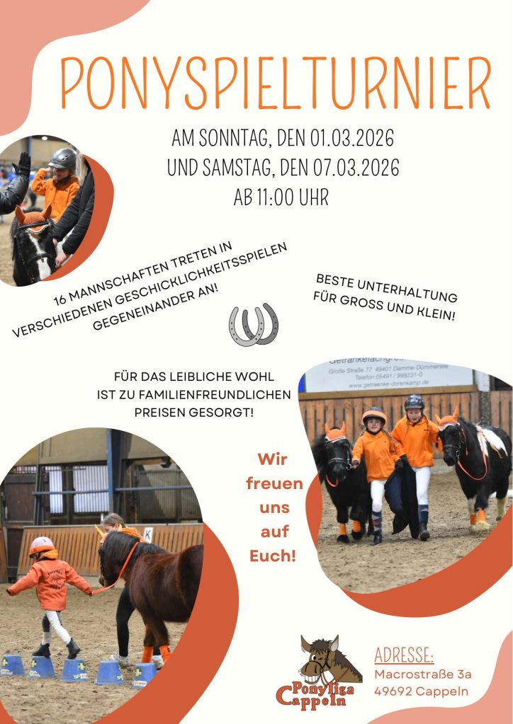 Am 01. und 07. März richtet die Ponyliga Cappeln Ponyspielturniere aus.