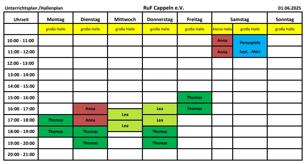 Für den Reitunterricht ohne eigenem Pony/Pferd gibt es zurzeit lange Warteliste, die teilweise, durch die hohe Anfrage, vorübergehend nicht erweitert werden.